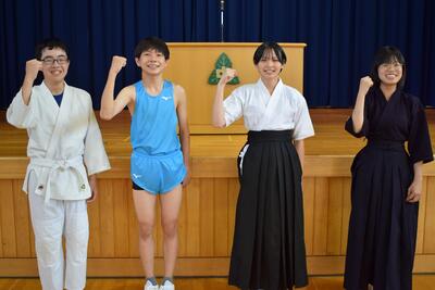 明日(6/22)からオホーツク管内中体連大会が始まります。明日は、弓道と柔道に各1名が出場します。本校からは、そのほかに、卓球、剣道、陸上に総勢13名が出場。なんと全校生徒(39名)のうちの1/3が大会に出場することになります。昨日は、壮行会を行い全校生徒、全教職員がエールを送りました。出場する選手のみなさんの健闘を祈ります。