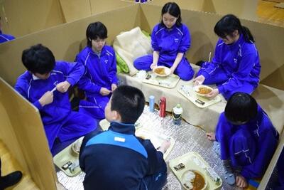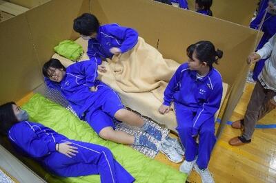 ~1日防災学校を実施しました~ 投稿: 管理者 (17:40) カテゴリー: 学校行事 10/3、1日防災学校を実施しました。今年度は、自衛隊・消防署・警察署・市役所の方々をお招きして講話をしていただきました。その中でも「Doはぐ」の体験型授業では、避難所設営で重要なダンボールベッドを実際に組み立て、本校を避難所として機能させるためにカードゲームを行うなど、考えながら学ぶことができました。